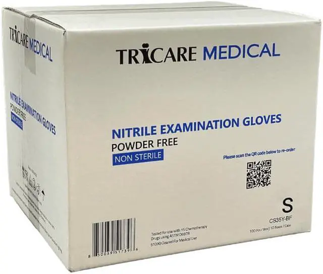 Use these Tricare Medical powder-free nitrile gloves to create a protective barrier between delicate specimens and your hands. Compliant with ASTM D6978 standards, they can tolerate 15 chemotherapy drugs. Grip various objects or equipment steadily with these medical examination gloves, which feature textured fingertips.