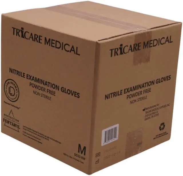 Enhanced Design: Tricare Medical Low Derma Technology Nitrile Exam gloves Known for its exceptional grip and tactile sensitivity. Commonly used for non sterile medical tasks. Can also be used for manufacturing, food service, cleaning, tattoo artists, barber shops and more. If your job requires wearing gloves, you will have to try these gloves. We are sure they will be your new favorite gloves. FDA approved for medical use, latex and powder free. 100 gloves per box or 1000 gloves/case (10 boxes). Sizes from Small to Extra Large.
