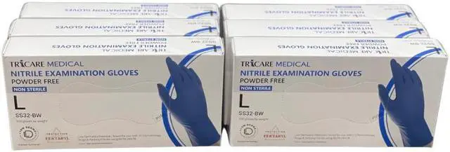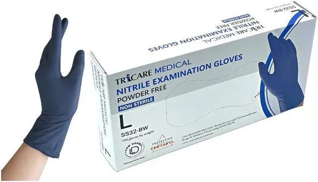 Enhanced Design: Tricare Medical Low Derma Technology Nitrile Exam gloves Known for its exceptional grip and tactile sensitivity. Commonly used for non sterile medical tasks. Can also be used for manufacturing, food service, cleaning, tattoo artists, barber shops and more. If your job requires wearing gloves, you will have to try these gloves. We are sure they will be your new favorite gloves. FDA approved for medical use, latex and powder free. 100 gloves per box or 1000 gloves/case (10 boxes). Sizes from Small to Extra Large.