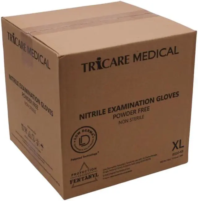 Enhanced Design: Tricare Medical Low Derma Technology Nitrile Exam gloves Known for its exceptional grip and tactile sensitivity. Commonly used for non sterile medical tasks. Can also be used for dental, manufacturing, food service, cleaning, tattoo artists, barber shops and more. If your job requires wearing gloves, you will have to try these gloves. We are sure they will be your new favorite gloves. FDA approved for medical use, latex and powder free. 100 gloves per box or 1000 gloves/case (10 boxes). Sizes from Small to Extra Large.