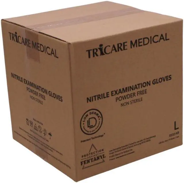 Enhanced Design: Tricare Medical Low Derma Technology Nitrile Exam gloves Known for its exceptional grip and tactile sensitivity. Commonly used for non sterile medical tasks. Can also be used for dental, manufacturing, food service, cleaning, tattoo artists, barber shops and more. If your job requires wearing gloves, you will have to try these gloves. We are sure they will be your new favorite gloves. FDA approved for medical use, latex and powder free. 100 gloves per box or 1000 gloves/case (10 boxes). Sizes from Small to Extra Large.