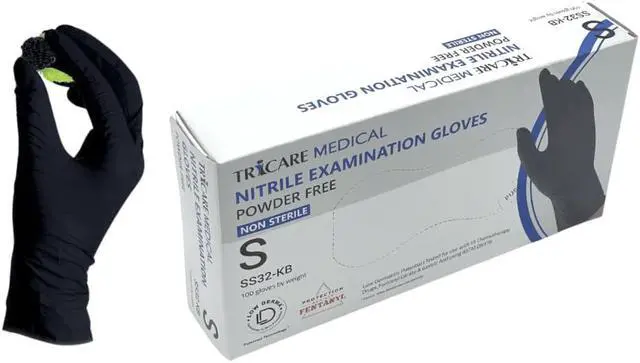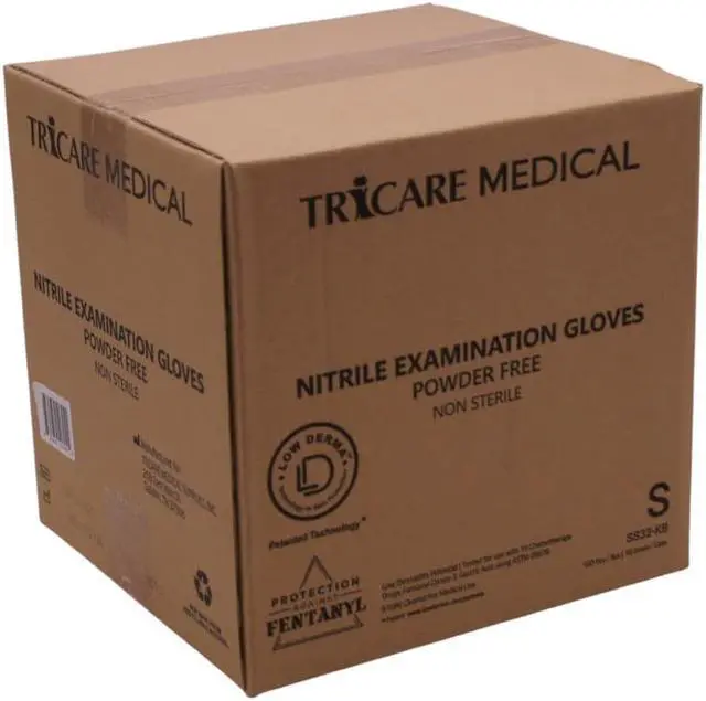 Enhanced Design: Tricare Medical Low Derma Technology Nitrile Exam gloves Known for its exceptional grip and tactile sensitivity. Commonly used for non sterile medical tasks. Can also be used for dental, manufacturing, food service, cleaning, tattoo artists, barber shops and more. If your job requires wearing gloves, you will have to try these gloves. We are sure they will be your new favorite gloves. FDA approved for medical use, latex and powder free. 100 gloves per box or 1000 gloves/case (10 boxes). Sizes from Small to Extra Large.