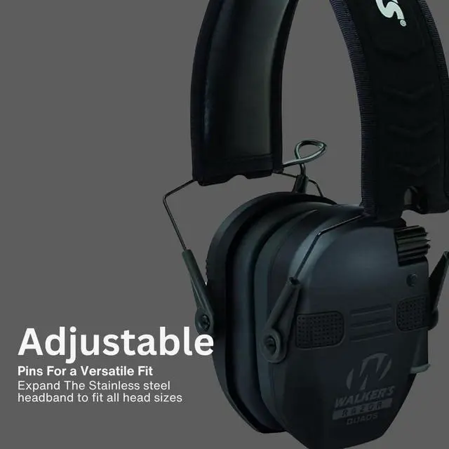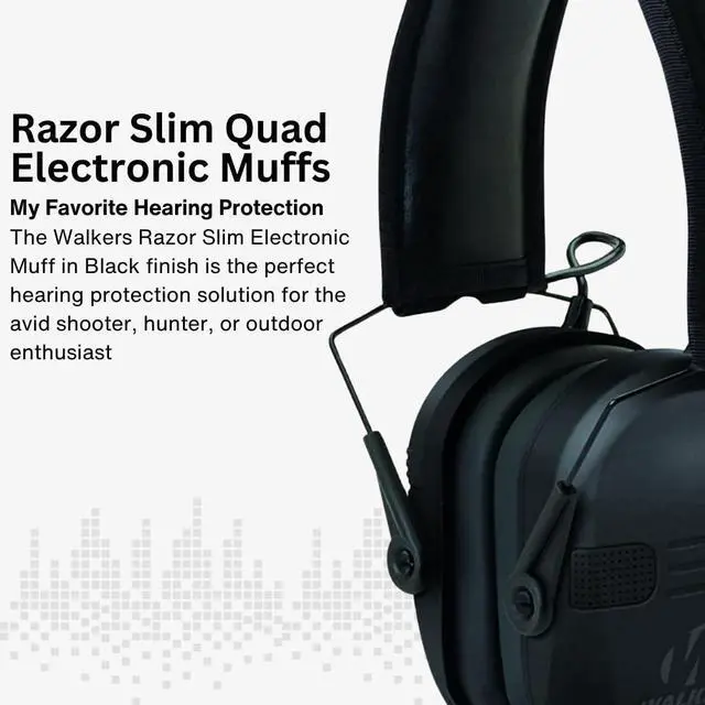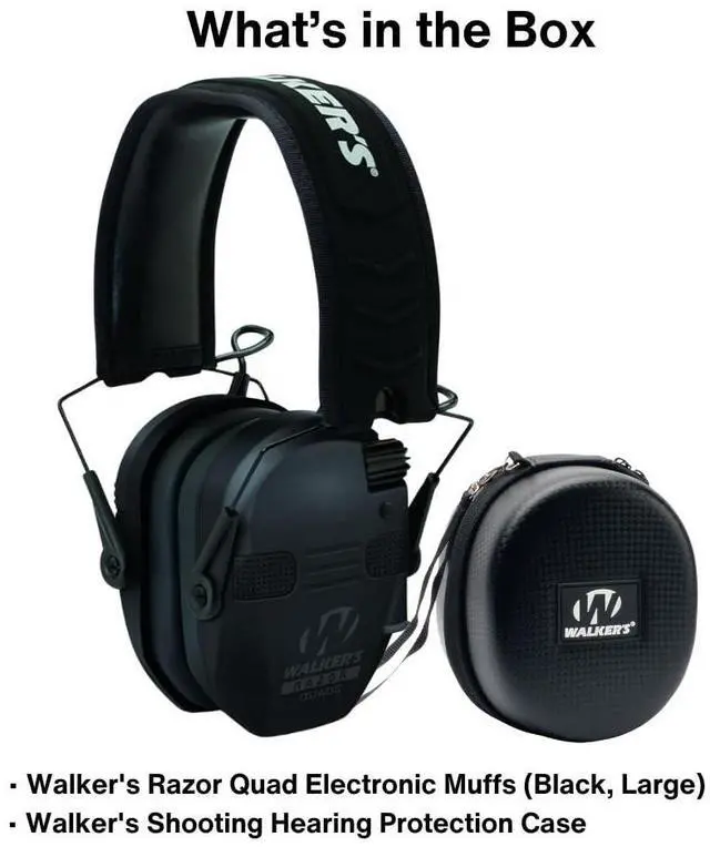 Walker's Razor Quad Electronic Muffs for Hunters and Shooters (Black, Large)