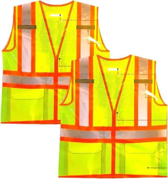 COMFITWEAR High Visibility Safety Vests for Construction,Work School Outdoor Sports Traffic Safety Orange/Yellow (2 Pack, X-LARGE)
