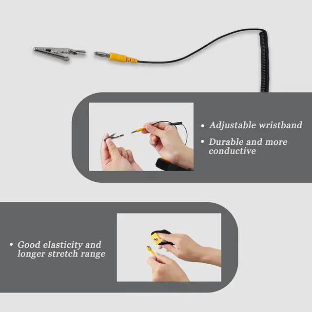 2.Equipped with a 5.9-foot retractable cable,grounding bracelet is suitable for large work areas and more flexible