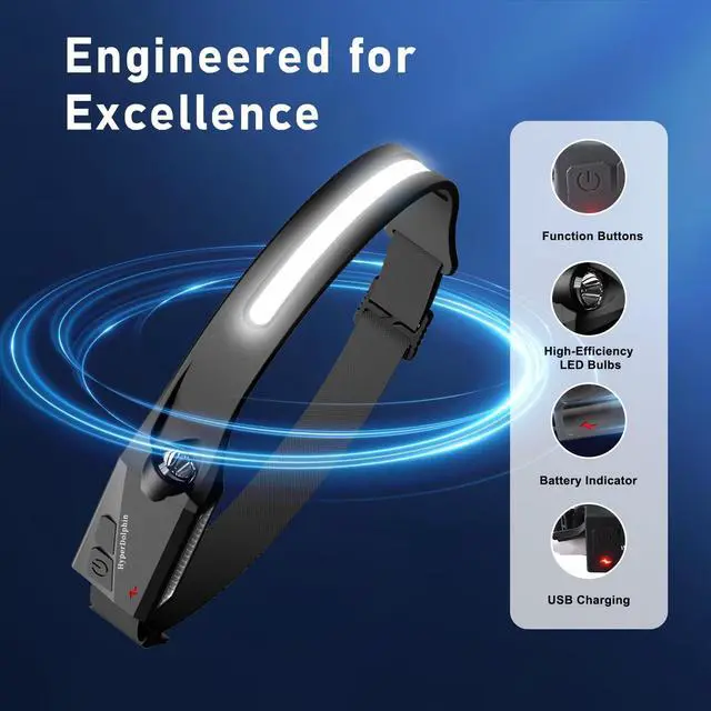Our headlamp delivers a broad 230° field of illumination, giving you a wider view of your surroundings for night running, fishing, cycling, camping, and hiking. The COB front LED (approx. 500 lumens) and complementary side LED provide strong, even light suitable for trail and work use.