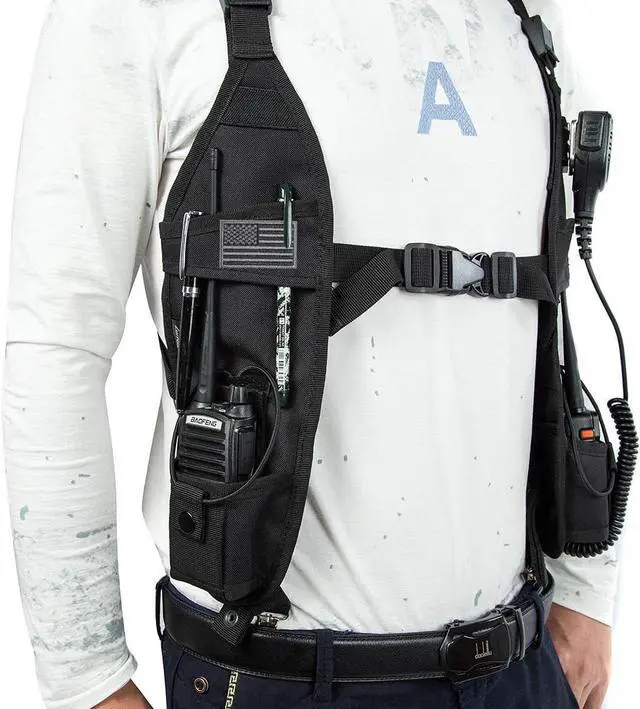 Radio Shoulder Harness Holster Chest Holder Universal Vest Rig for Police Firefighter Two Way Radio Search Rescue Essentials with 2 USA Flag Brooches
