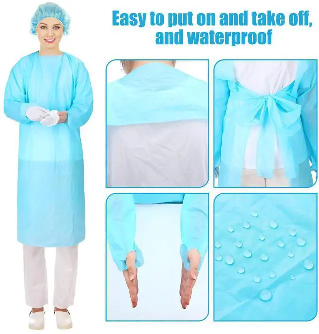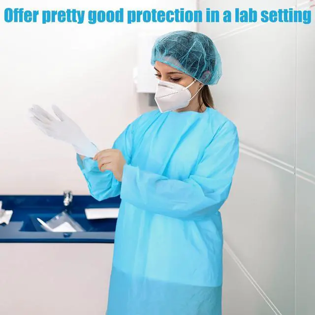 Broad Usage: our blue disposable gowns are incredibly easy to wear and remove during bathing loved ones, autoclaving, cleaning, dining, cooking, painting, and more, thanks to their effective design, and suitable for nursing, lab, industrial company, home or other places where the clean environment needs to be maintained, making them perfect for long wear periods