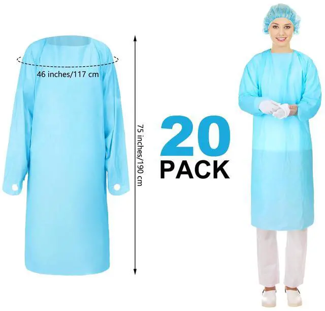 Rich Availability: our isolation gowns disposable come in pack of 20, to cater to both personal usage and home utilization, ensuring everyone stays protected and safe, and the multipack also offers savings, suitable for unisex adults