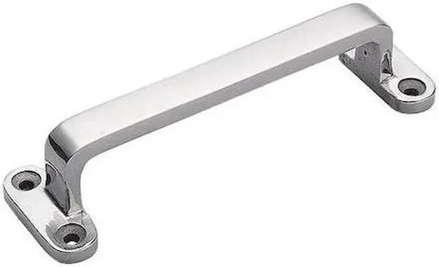 Pull Handle, Load Rated (Y/N) N, Mounting Type Unthreaded Through Holes, Material 304 Stainless Steel, Finish Polished, Mounting Hole Center to Center 5 3/16 in, Inner Mounting Hole Ctr. to Ctr. 5 3/16 in, Vert. Mounting Hole Ctr. to Ctr. 1 3/16 in, Projection 1 19/64 in, Grip Dia. 19/32 in, Grip Thickness 1/4 in, Screw Size #25 x 5 in, Overall Length 4 61/64 in, Overall Width 1 49/64 in, Natural, Grip Height 5/16 in, Grip Length 4 21/64 in, Hardware Included.