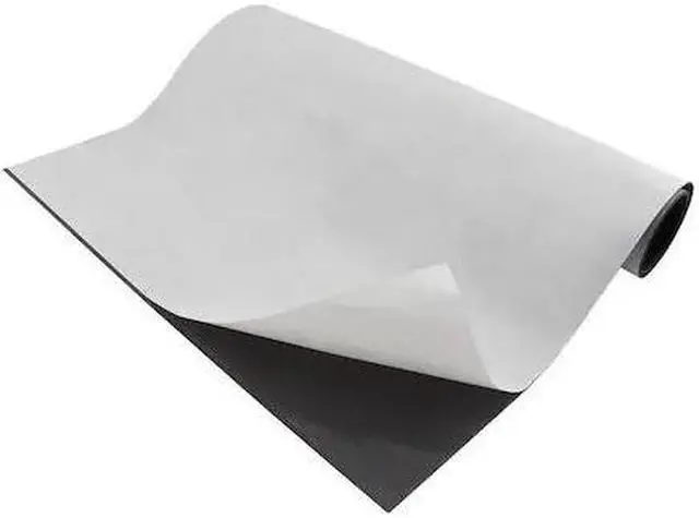 Sheet Magnet, Nonmagnetic Side Indoor Adhesive, Max. Pull 85 lb/sq ft, Length 24 in, Width 12 in, Thickness 0.03 in, Dry Mixture of Ferrite Powder and Rubber Polymer Resin, Stability Temp. 0 Degrees to 160 Degrees F, Package Quantity 6. This item has been restricted from sale in the following state (s): []