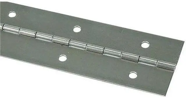 Continuous Hinge, Ligature Resistant No, Steel Material, 180 Degrees Range of Motion, Steel Finish, With Holes, Non Handed Orientation, 1/2 in Overall Knuckle Height, 72 in Door Leaf Height, 72 in Frame Leaf Height, 1 in Door Leaf Width, 1 in Frame Leaf Width, 0.04 in Door Leaf Thickness, 0.04 in Frame Leaf Thickness, Length 6 ft, Not Included Hardware, 2 in Hole Spacing, 36 Holes per Leaf, Full Surface Mounting, 3/32 in Pin Dia., Steel Pin Material, Nonremovable Pin Type, 2 in Overall Width.