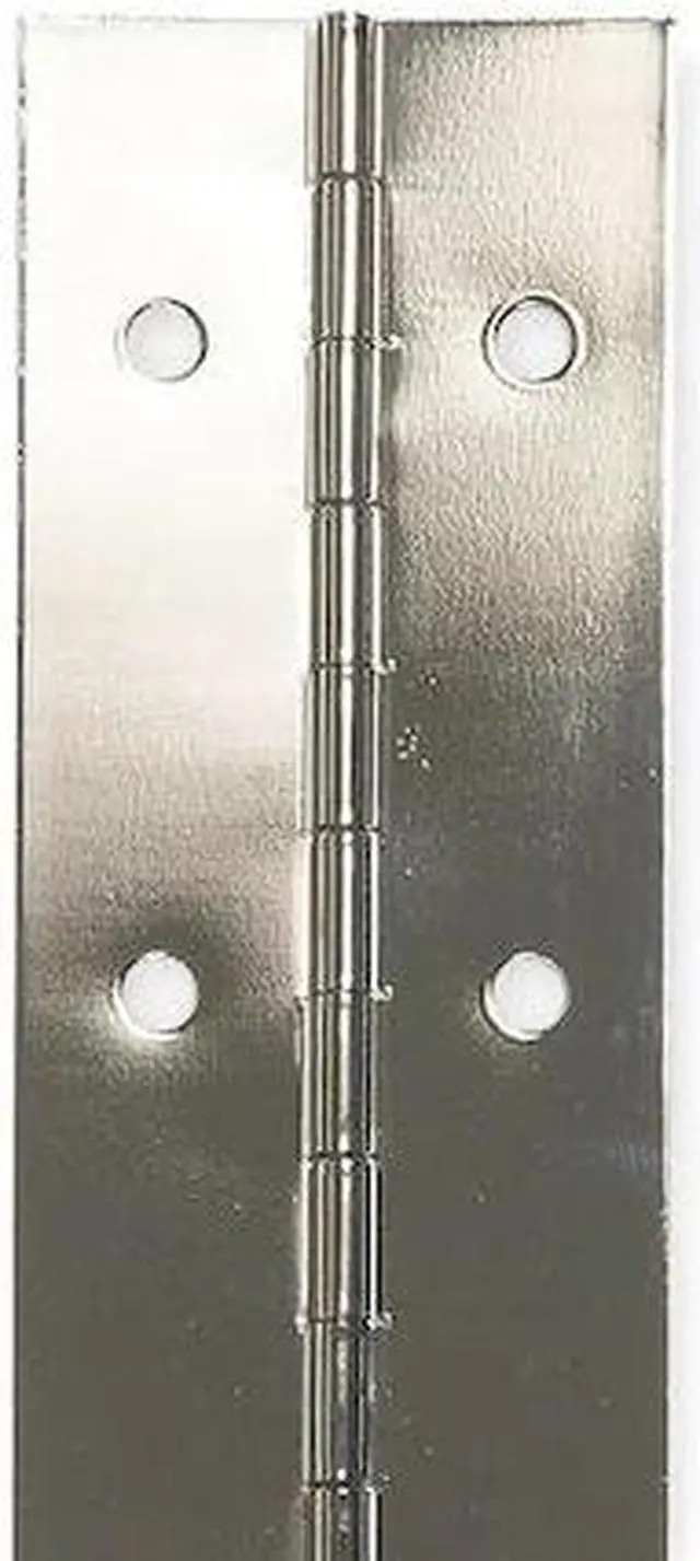 California Proposition 65: This product contains a chemical known to the State of California to cause birth defects or other reproductive harm. Piano Hinge, Ligature Resistant No, Steel Material, 180 Degrees Range of Motion, Bright Nickel Finish, With Holes, Non Handed Orientation, 1/2 in Overall Knuckle Height, 48 in Door Leaf Height, 48 in Frame Leaf Height, 1 in Door Leaf Width, 1 in Frame Leaf Width, 0.04 in Door Leaf Thickness, 0.04 in Frame Leaf Thickness, Length 4 ft, Not Included Hardware, 2 in Hole Spacing, 36 Holes per Leaf, Full Surface Mounting, 3/32 in Pin Dia., Steel Pin Material, Nonremovable Pin Type, 2 in Overall Width. This item has been restricted from sale in the following state (s): []
