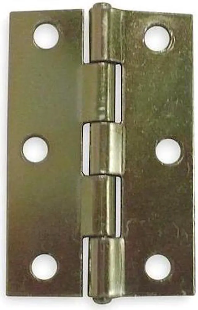 California Proposition 65: This product contains a chemical known to the State of California to cause birth defects or other reproductive harm. Butt Hinge, Steel, Brass Finish, With Holes, 3 Holes per Leaf, No Ligature Resistant, 270 Degrees Range of Motion, Orientation Non Handed, 2 1/2 in Door Leaf Height, 2 1/2 in Frame Leaf Height, 1 11/16 in Door Leaf Width, 1 11/16 in Frame Leaf Width, 0.056 in Door Leaf Thickness, 0.056 in Frame Leaf Thickness, Plain Bearing Type, Square Corners, Included Hardware, Package Quantity 2. This item has been restricted from sale in the following state (s): []