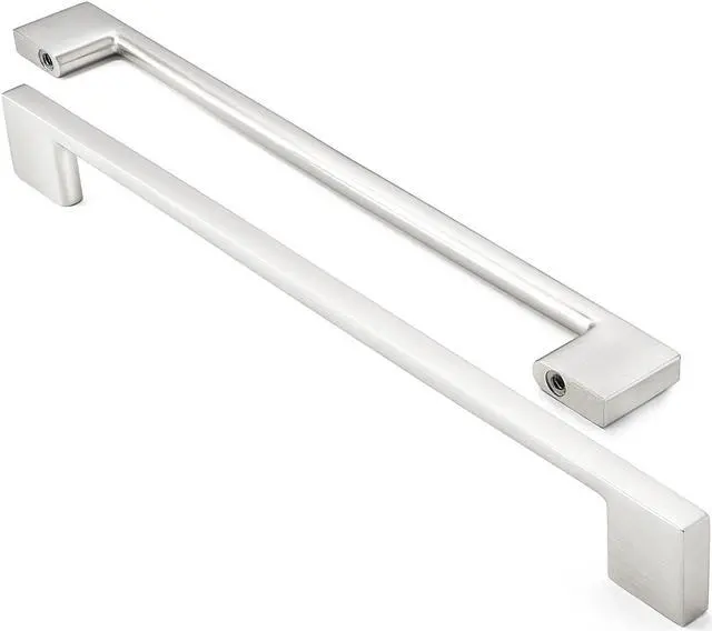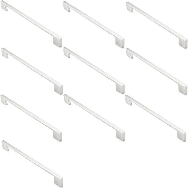 Cauldham 10 Pack Solid Kitchen Cabinet Pulls Handles (9" Hole Centers) - Modern Thin Profile Drawer/Door Hardware - Style M255 - Satin Nickel
