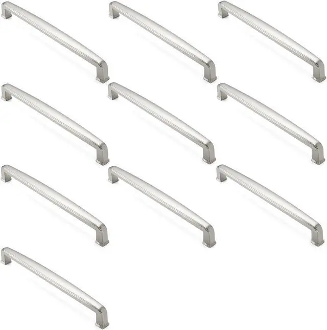 Cauldham 10 Pack Solid Kitchen Cabinet Handles (7-1/2" Hole Centers) - Drawer/Door Hardware - Style T765 - Satin Nickel
