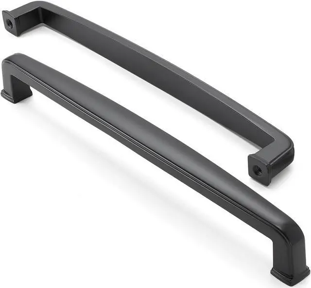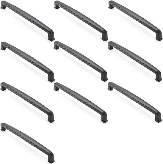 Cauldham 10 Pack Solid Kitchen Cabinet Handles (7-1/2" Hole Centers) - Drawer/Door Hardware - Style T765 - Matte Black