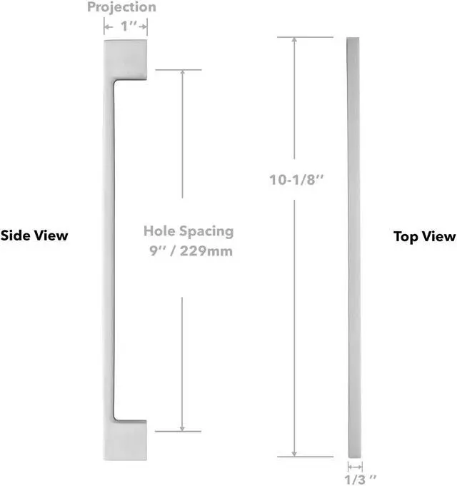 • Product specifications: Handle length 10-1/8", hole centers 9"(229mm), and projection 1".