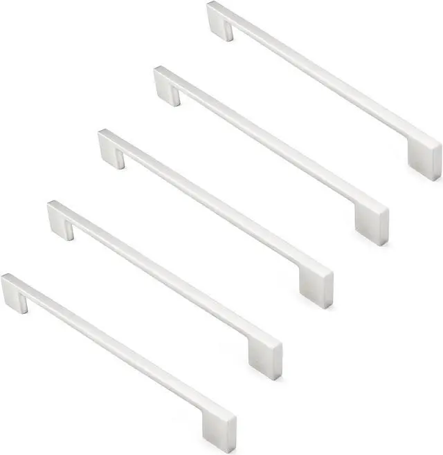 cauldham 5 pack solid kitchen cabinet pulls handles (9" hole centers) - modern thin profile drawer/door hardware - style m255 - satin nickel