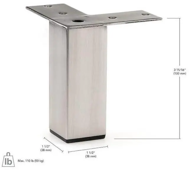 California Proposition 65: This product contains a chemical known to the State of California to cause birth defects or other reproductive harm. Contemporary square metal furniture leg. Ideal for cabinets, closets, and garage units. Integrated pad to protect floors.