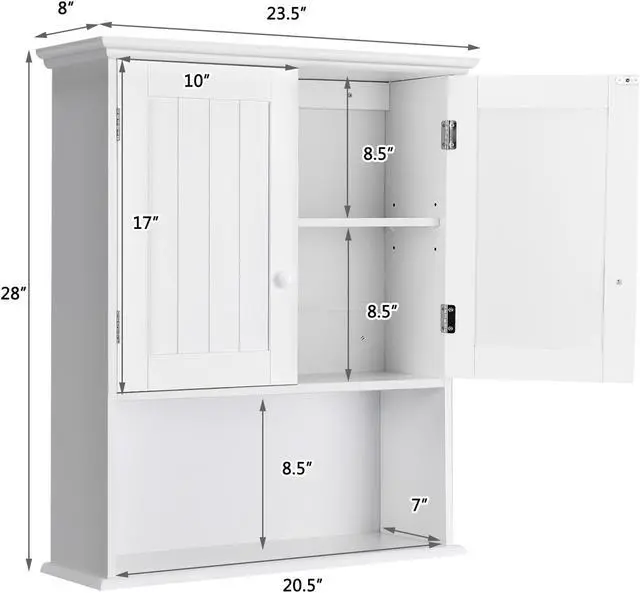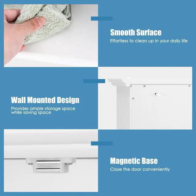 Our bathroom wall cabinets will keep your space organized. Because of its simple design style and multi-purpose design, wall-mounted cabinets are the most suitable choice whether it is to store bathroom supplies in the bathroom or to place sundries on the balcony. Taking into account the different heights of the storage, the internal shelf height provides 3 adjustable heights. The double-layer storage cabinet can hold ample items while keeping them clean. The open shelf displays commonly used objects for easy searching and taking. The wall-mounted design helps the small room maximize and save valuable floor space. The detailed instruction and free accessories save you from worrying that the installation will consume too much time.