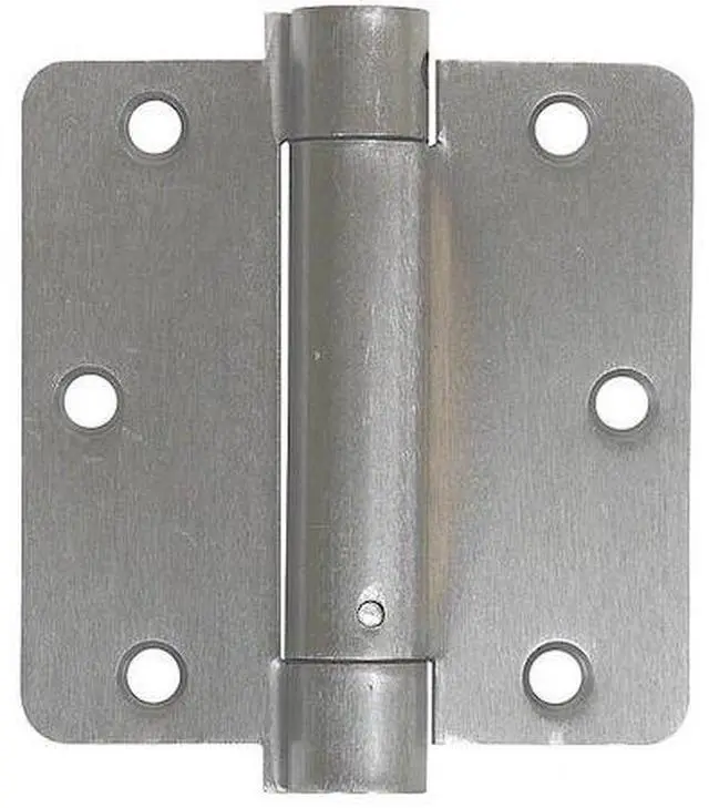 California Proposition 65: This product contains a chemical known to the State of California to cause birth defects or other reproductive harm. Spring Hinge, Steel Material, Satin Chrome Finish, 75 lb Load Capacity, With Holes, 3 Holes per Leaf, No Ligature Resistant, 270 Degrees Range of Motion, Orientation Non Handed, 3 1/2 in Door Leaf Height, 3 1/2 in Frame Leaf Height, 1 3/4 in Door Leaf Width, 1 3/4 in Frame Leaf Width, 0.099 in Door Leaf Thickness, 0.099 in Frame Leaf Thickness, Plain Bearing Type, Rounded Corners, Included Hardware, Full Mortise Mounting, Not Applicable Overall Knuckle Height, Steel Pin Material. This item has been restricted from sale in the following state (s): []