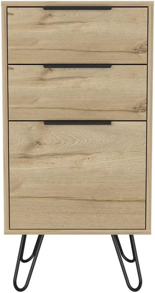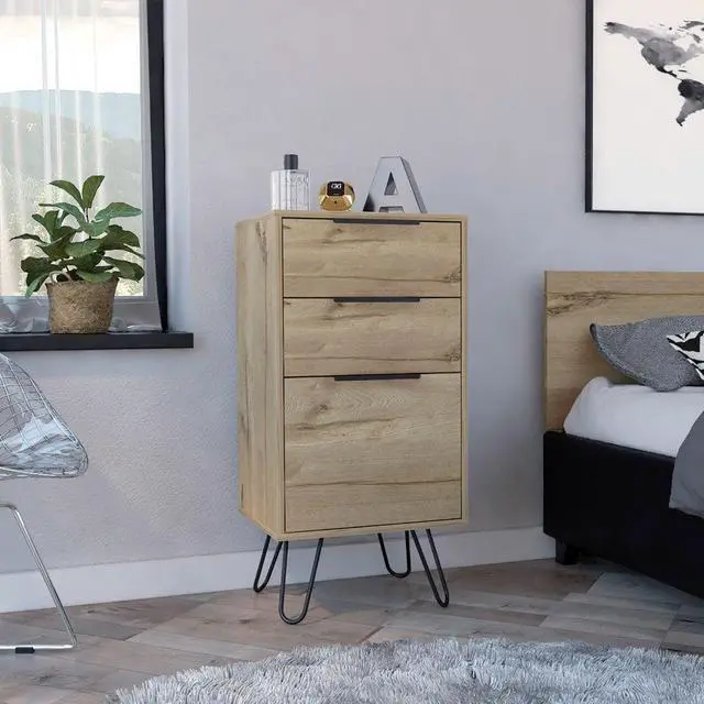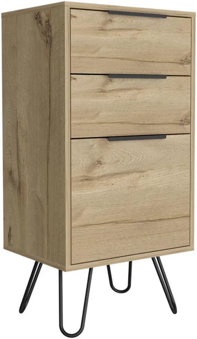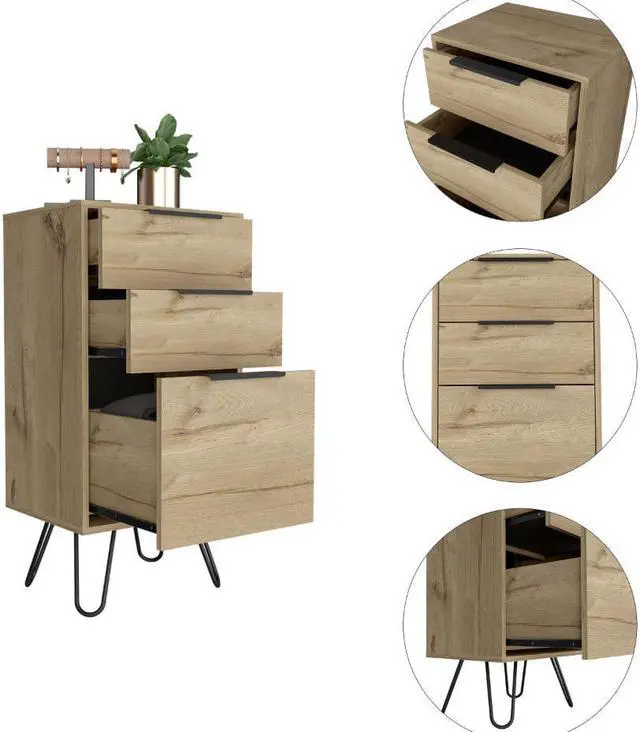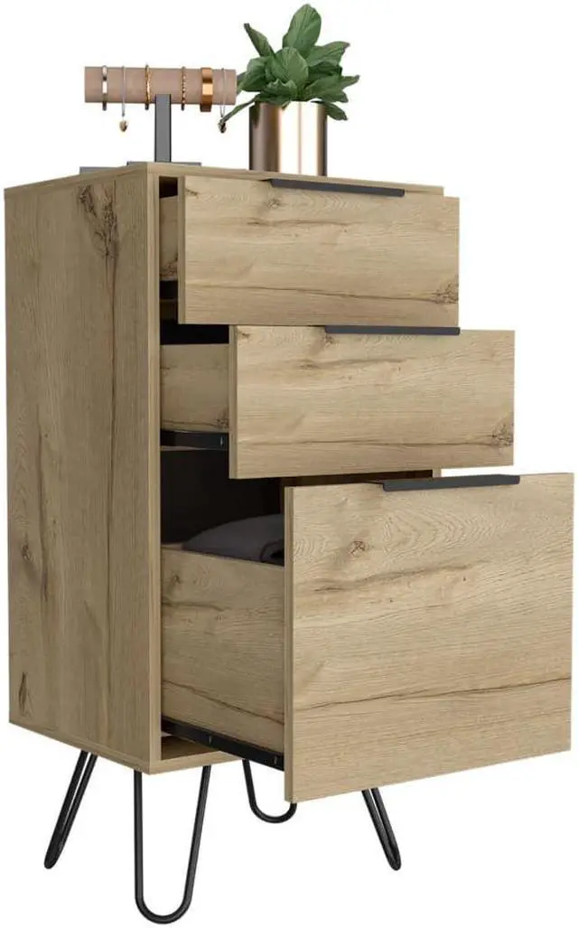 London Dresser, having a small space does not impede adding extra storage; due to its ergonomic design, the London dressing room is perfect for any space. It has three spacious drawers (12,9''H X 6,4''H X 16,2''W) that help to accommodate everything you need in an orderly and straightforward way, quickly viewing all your items! In addition, it includes a Superior Top to put your books on or decorate it as you prefer. Due to its metal legs, greater firmness, and a modern style perfect to complement any room. Designed with elegant light oak manufactured wood finish.