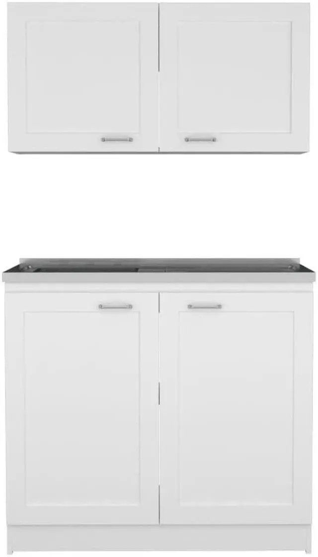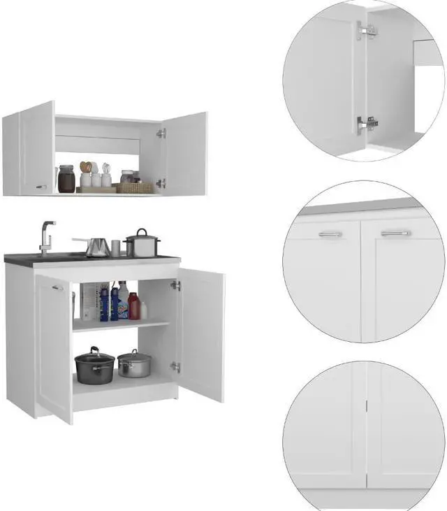 Perseus Cabinet Set, if you want an ideal kitchen, it requires the incorporation of a Cabinet Set, and we have the proper one for you. This Perseus Cabinet set features plenty of storage and plenty of storage for the whole of your kitchen necessities, with a double set for superior and lower cabinets. This set comes with two interior shelves for organizing your utensils and two-door cabinets for a unique look. Its dimensions are (30,8" H X 39,3" W X 20,4"D) and (19,2"H X 39,3"W X 12,6"D), the superior-top (41.2'') the low top (44.3'') Designed with elegant black wengue, light gray and white manufactured wood finish.