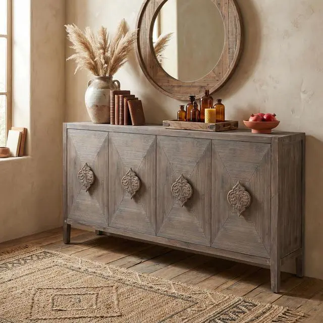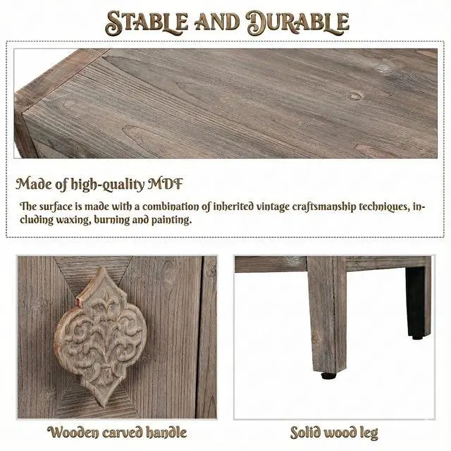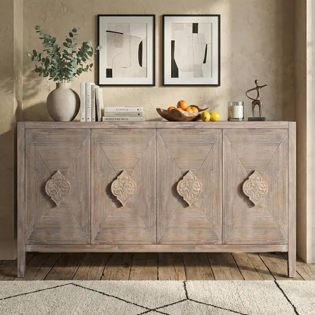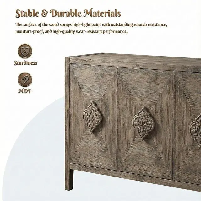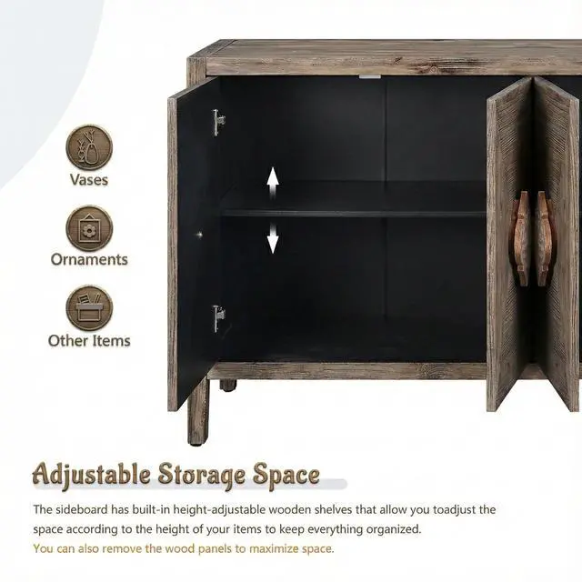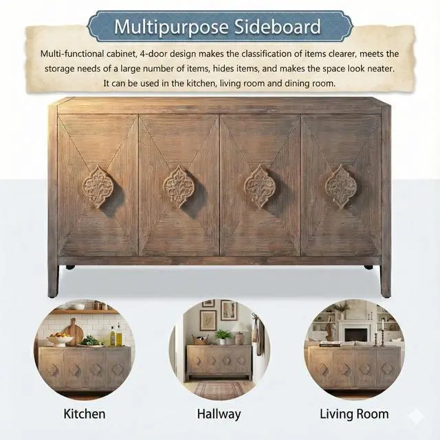 This 4-Door Storage Wooden Cabinet offers a perfect combination of artistic design and practical storage capability. It is designed to add a unique vintage flavor and atmosphere to your whole home space.