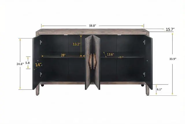 Flexible Storage Space: The space design of the cabinet is very flexible.Behind the four doors, the center panel supports upper, middle, and lower three-gear adjustments. This allows you to flexibly adjust the internal space according to your needs to adapt to storage requirements for different sizes of items.