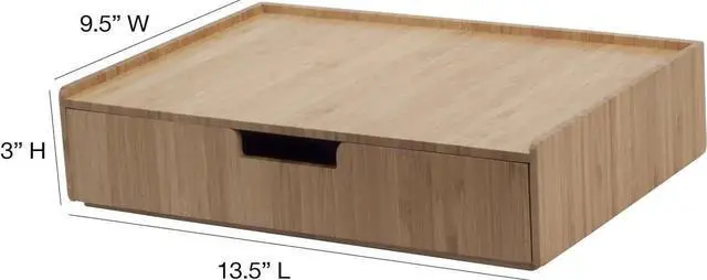 LARGE BAMBOO DRAWER DIMENSIONS: 13.5 x 9.5 x 3 ( 34.29 cm x 24.13 cm x 7.62 cm) 2 Inner drawer height with a depth wide enough to hold a Letter Sized 8.5 " x 11" piece of paper.