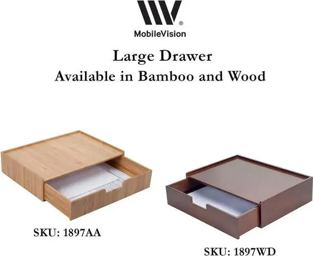 NEW Bigger MobileVision Bamboo Drawer wide enough to hold most computer monitors and to help you organize, tidy up, and hide nearly any mess. Keep your desk space clear from clutter and loose items with this compact tuck away compartment.