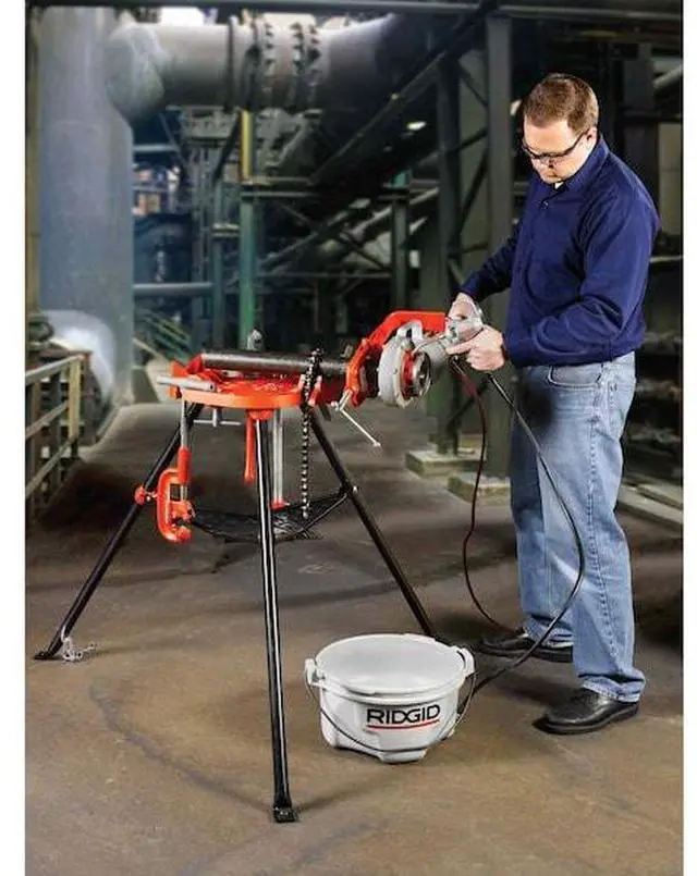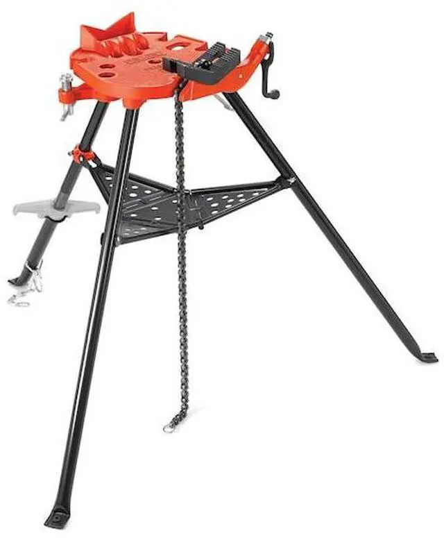 Pipe stands and vises are most often used to keep pipes in place when threading or cutting. Take a look at the features for Ridgid Portable Chain Vise. Material: Ductile Iron Work Surface, Hardened Steel Jaws and Tubular Legs, Pipe Capacity: 1/8 to 6".. This item has been restricted from sale in the following state(s): []