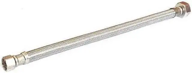 California Proposition 65: This product contains a chemical known to the State of California to cause birth defects or other reproductive harm. Water Connector, Hose Inside Dia. 3/8 in, Hose Outside Dia. 1/2 in, Hose Length 20 in, Hose Color Silver, Hose Tube Material PVC, Hose Cover Material 304 Stainless Steel, Max. Working Pressure @ 70 F 125 psi, Temp. Range 40 Degrees to 180 Degrees F, Standards IAPMO, NSF61, Bend Radius 2 3/8 in, Hose Fitting A Material Brass, Hose Fitting B Material Brass, Hose Fitting A Type F Compression, Hose Fitting B Type FIP, Hose Fitting A Size 3/8 in, Hose Fitting B Size 1/2 in. This item has been restricted from sale in the following state (s): []
