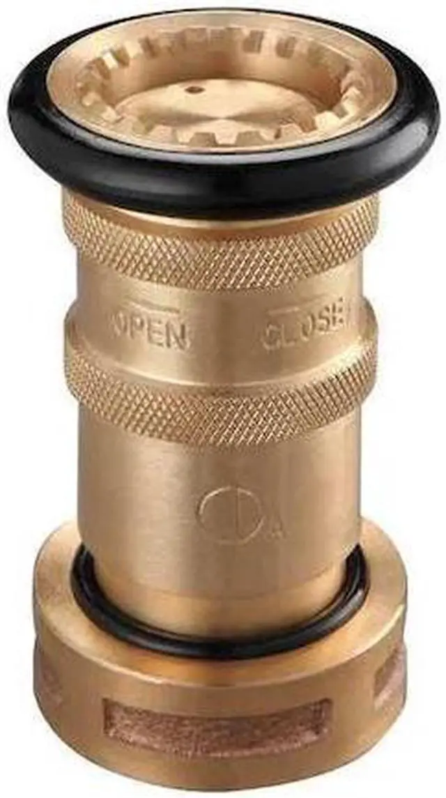California Proposition 65: This product contains a chemical known to the State of California to cause birth defects or other reproductive harm. Fire Hose Nozzle, Activates By Twist, Base Type Swivel, Body Material Brass, Grip Type Standard, Inlet Size 1 1/2 in, Maximum Flow Rate 130 gpm, Maximum Pressure 100 psi, Product Type Fire Hose Nozzle, Spray Pattern Fog/Straight Stream, Thread Type NPSH, Waterway Diameter Not Applicable, Bumper Color Black, Finish Brass, For Use With Water, Standards UL Listed. This item has been restricted from sale in the following state (s): []