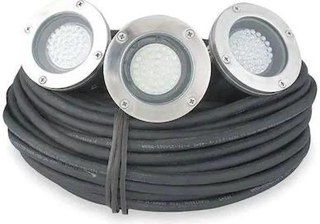 Pond Light System, Compatible with Grainger Part Number 2VAN2, 2VAN3, 2VAN4, Compatible with Manufacturer Model Number 2VAN2, 2VAN3, 2VAN4, Cord Length 100 ft, Includes (3) LED Flood Lamps, Mounting Hardware, Stainless Steel Housing with Clear Lenses, Waterproof Splice Kit, Lighting Technology LED, Nameplate Voltage 120V AC, Number of Lights 3, Power Consumption 120 W, Included Lens Colors Clear. This item has been restricted from sale in the following state (s): []