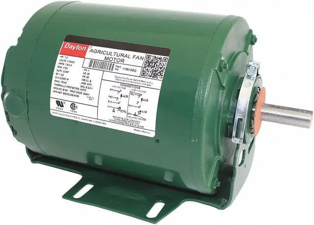 Agricultural Fan Motor, Single Phase, Motor Design Split-Phase, 1/2 HP, Nameplate RPM 1, 725, No. of Speeds 1, Voltage 115/230V AC, Full Load Amps 7.6 / 3.8, 56 Frame, 60 Hz, Motor Service Factor 1.25, Motor Thermal Protection Auto, Ins. Class B, Max. Ambient Temp. 40 Degrees C, Duty Cycle Continuous, Motor Shaft Rotation CW/CCW, Motor Enclosure Design Totally Enclosed Air-Over, Motor Mounting Type Cradle Base, Motor Mounting Position Horizontal, Motor Frame Material Rolled Steel