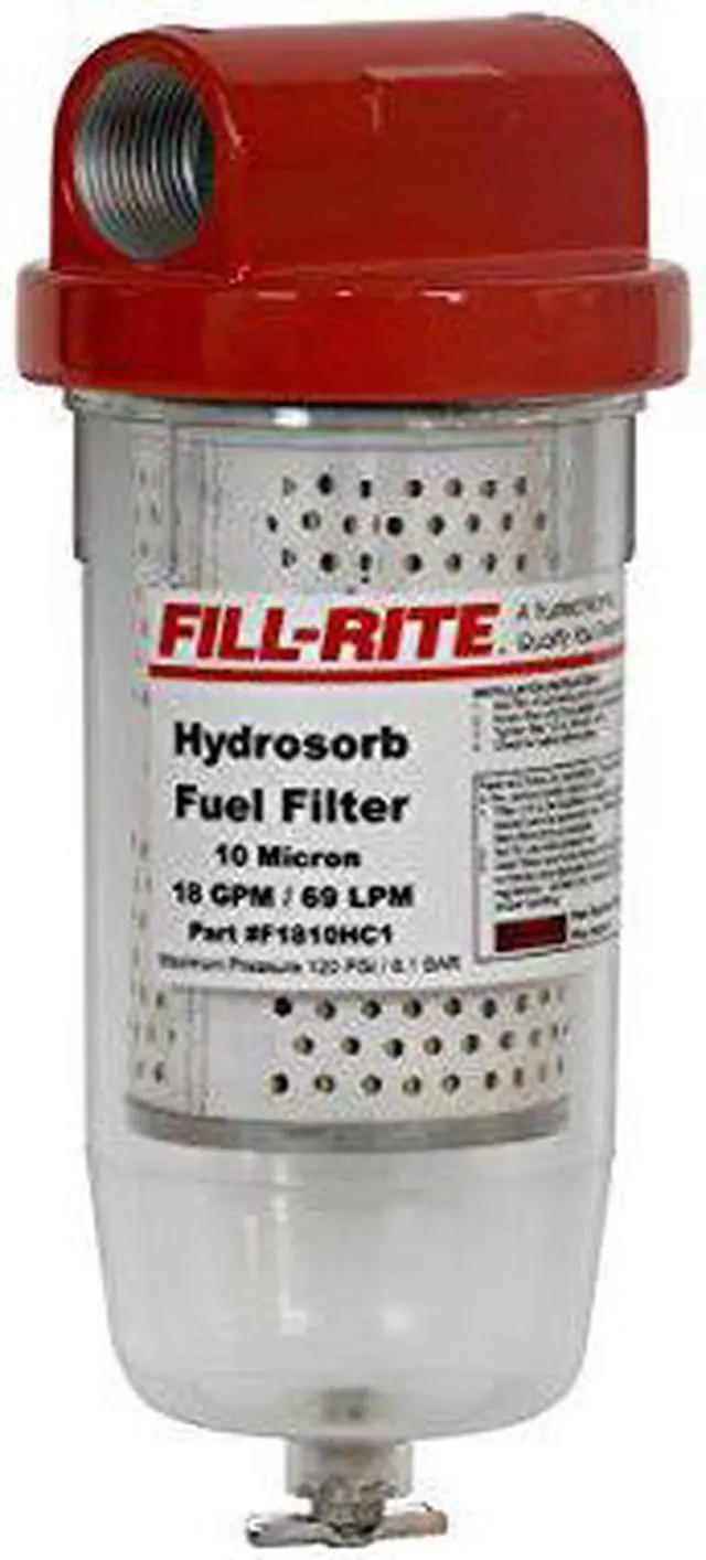 The F1810HC1 is a fuel transfer filter that strains hydrocarbons up to 10 micron and is designed for fuel transfer systems with flow rates up to 18 gallons per minute.