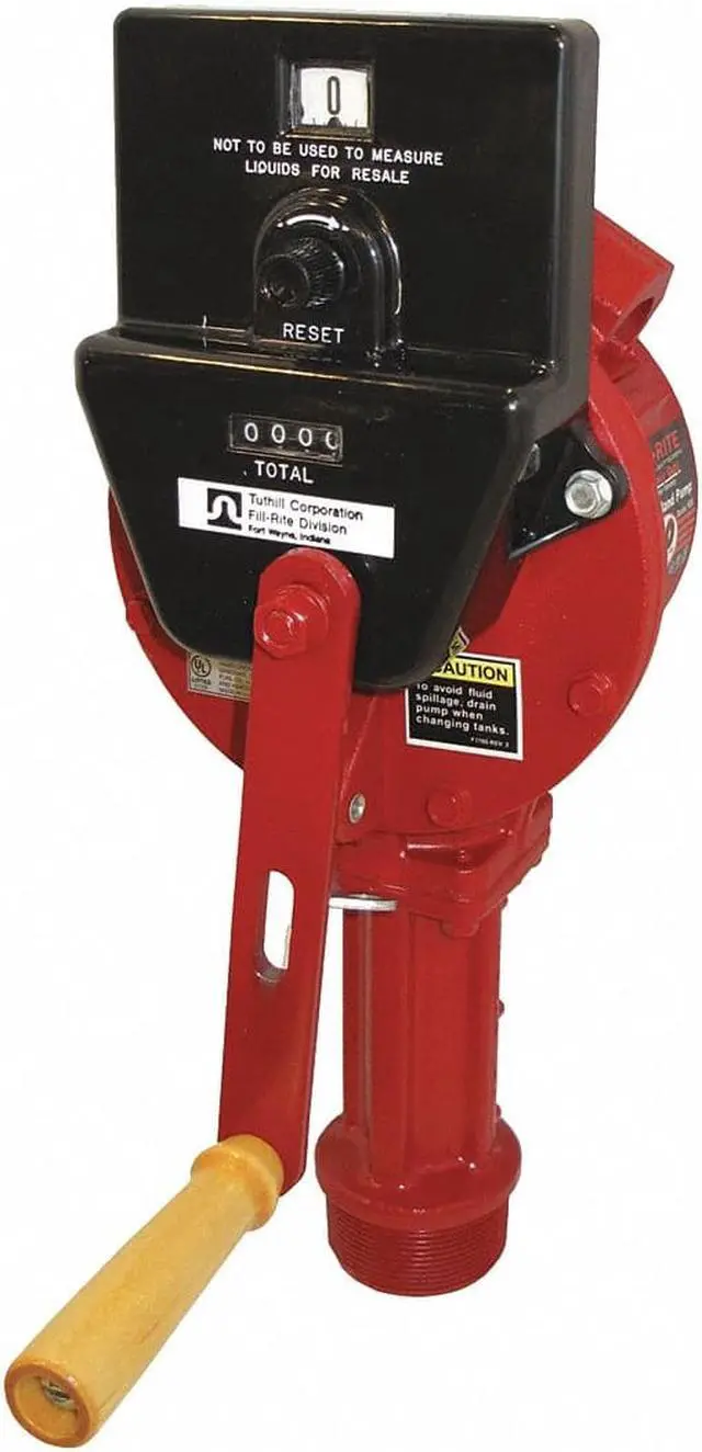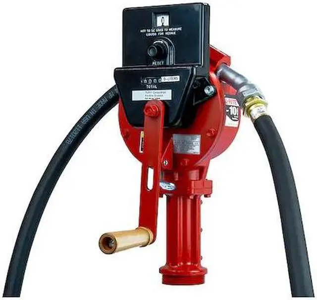 Hand Pump, Max. Outlet Pressure 38 psi, Pump Connection OD 2 1/8 in, Self-Priming Yes, Metered Yes, Hose Length 8 ft, Includes Discharge Hose Yes, Piston Material Not Applicable, Features Anti-Siphon Valve, Can Be Used to Pump In Reverse Direction, Rotary Hand Pump, Housing Finish Not Applicable, Seal Material Carbon, For Use With Diesel/Fuel Oil, Adapter Connection Type MNPT, For Container Type Drum, Hose Cover Material Neoprene, Includes Bung Adapter Yes, Includes Nozzle Yes, Includes Spout No. This item has been restricted from sale in the following state (s): []