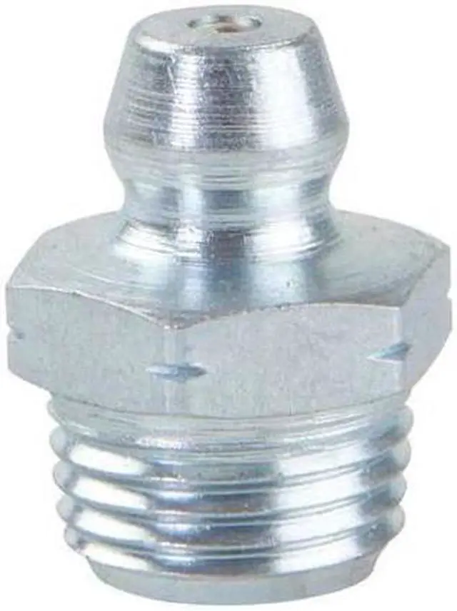 Grease Fitting, Grease Fitting Style Thread Forming, Fitting Material Steel, Fitting Finish Zinc-Plated, Fitting Head Angle Straight, Fitting Thread Size 1/8 In. -27, Overall Length 5/8 in, Max. Pressure 5, 000 psi, Meets/Exceeds SAE J-534-C, Package Quantity 10. This item has been restricted from sale in the following state (s): []