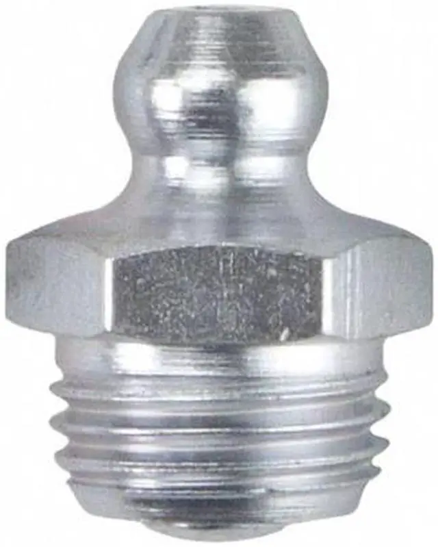 Grease Fitting, Grease Fitting Style Standard, Fitting Material Steel, Fitting Finish Zinc-Plated, Fitting Head Angle Straight, Fitting Thread Size M10- 1.00 mm, Fitting Thread Type Metric, Overall Length 5/8 in, Max. Pressure 6, 000 psi, Meets/Exceeds DIN 71412, Package Quantity 10. This item has been restricted from sale in the following state (s): []