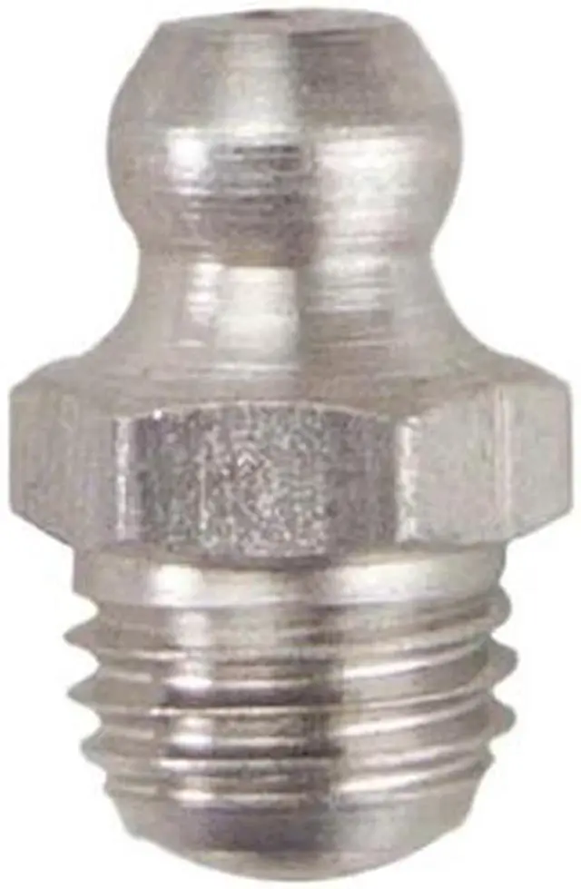 Grease Fitting, Grease Fitting Style Standard, Fitting Material Stainless Steel, Fitting Finish Unfinished, Fitting Head Angle Straight, Fitting Thread Size M8- 1.00 mm, Fitting Thread Type Metric, Overall Length 5/8 in, Max. Pressure 5, 000 psi, Meets/Exceeds DIN 71412, Package Quantity 10. This item has been restricted from sale in the following state (s): []