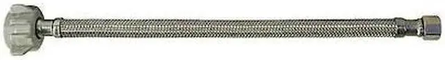 Toilet Connector, Hose Inside Dia. 5/16 in, Hose Length 20 in, Hose Tube Material PVC, Hose Cover Material Stainless Steel, Max. Working Pressure @ 70 F 250 psi, Temp. Range 40 Degrees to 180 Degrees F, Standards IAPMO, NSF, Hose Fitting A Material Brass, Hose Fitting B Material Plastic, Hose Fitting A Type F Compression, Hose Fitting B Type FIP, Hose Fitting A Size 3/8 in, Hose Fitting B Size 7/8 in, Hose Configuration Bulk Hose, For Use With Toilet, Application Toilet.