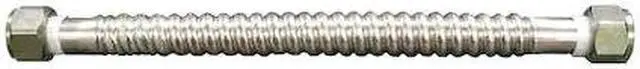 Supply Line, Hose Inside Dia. 5/16 in, Hose Length 15 in, Hose Tube Material PVC, Hose Cover Material Stainless Steel, Max. Working Pressure @ 70 F 250 psi, Temp. Range 40 Degrees to 180 Degrees F, Standards IAPMO, NSF, UPC, Hose Fitting A Material Brass, Hose Fitting B Material Brass, Hose Fitting A Type F Compression, Hose Fitting B Type FIP, Hose Fitting A Size 3/4 in, Hose Fitting B Size 3/4 in, Hose Configuration Bulk Hose, For Use With Water Heater, Application Water Heater. This item has been restricted from sale in the following state(s): []