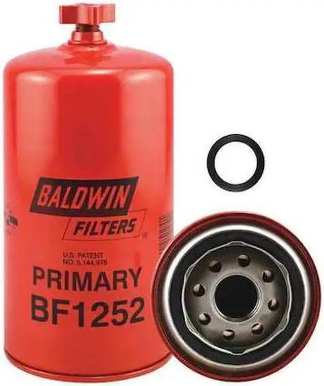 Fuel Filter, Filter Design Spin-On, Primary Fuel/Water Separator Spin-On with Drain, Micron Rating 40 micron, Height 7 13/32 in, Length 7 13/32 in, Width 3 11/16 in, Outside Dia. 3 11/16 in, Includes ES24-D Furnished Gasket, G381-A Integral Gasket, Thread Size 1 In. -14. This item has been restricted from sale in the following state (s): []
