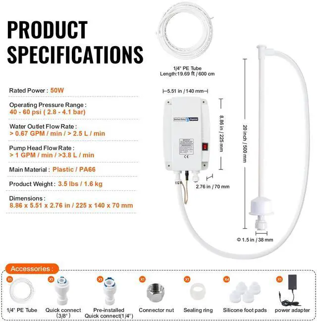 Pump Head Flow Rate: >1 GPM/min / > 3.8 L/min