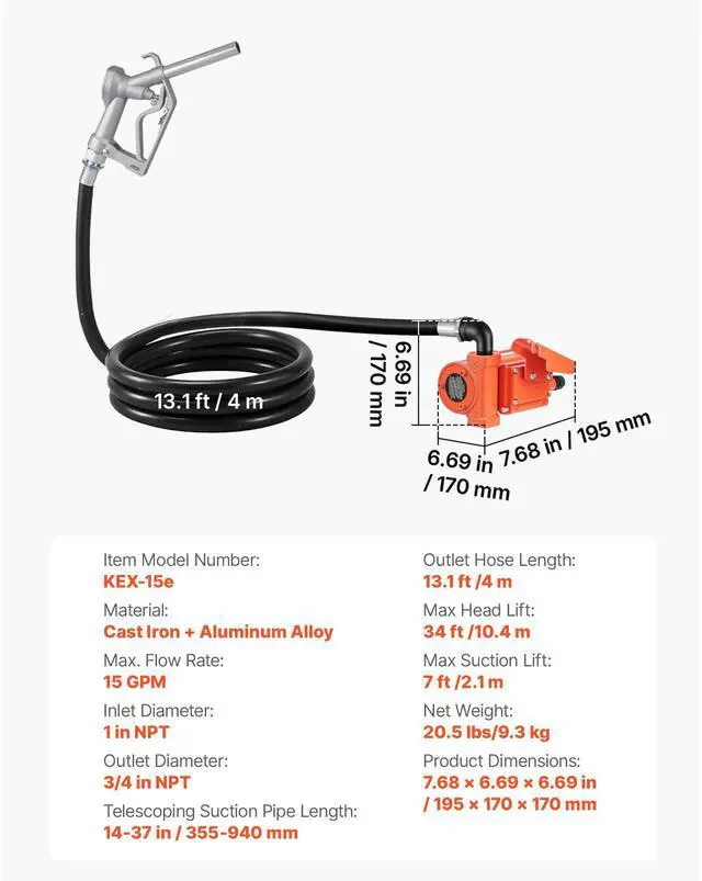 Max Suction Lift: 7 ft/ 2.1 m