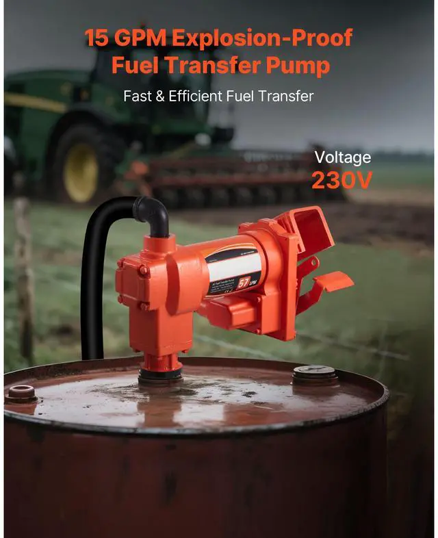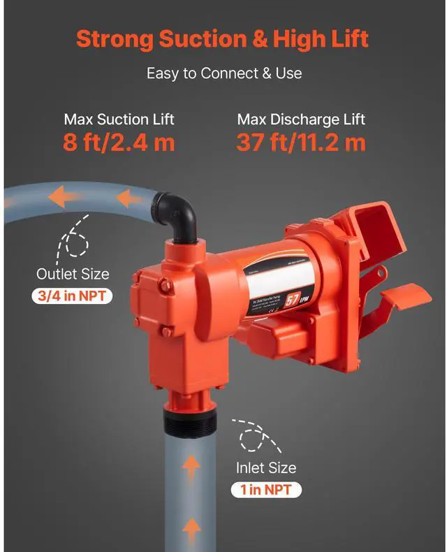Fuel Transfer Pump 110V, 15 GPM 57 L/min, AC Electric Oil Transfer Pump, 8 ft/2.4 m Max Suction Lift, 37 ft/11.28 m Max Lift, Overheat Protection, for Gasoline Diesel Kerosene Biodiesel Ethanol