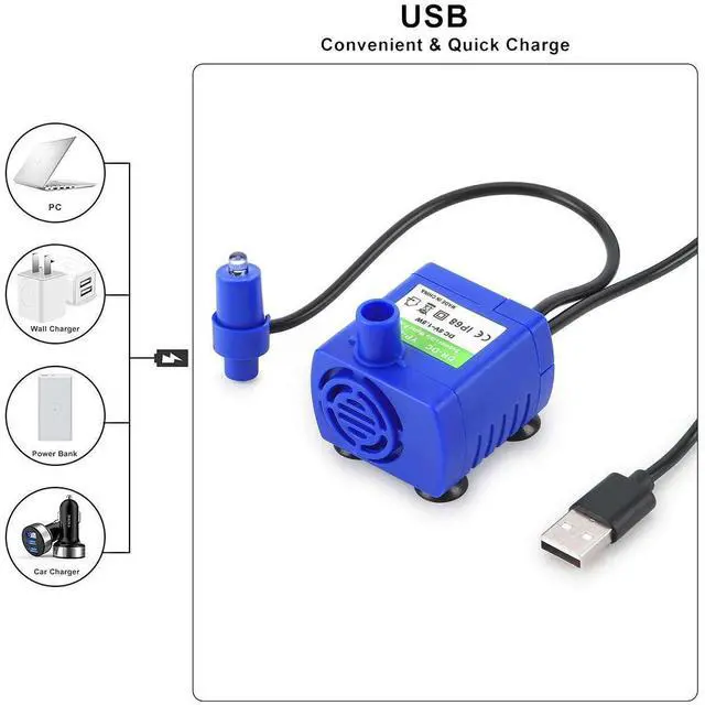 · This compact and practical pet fountain pump is compatible with many types of pet fountains for providing a good stream of water for your dear pet.