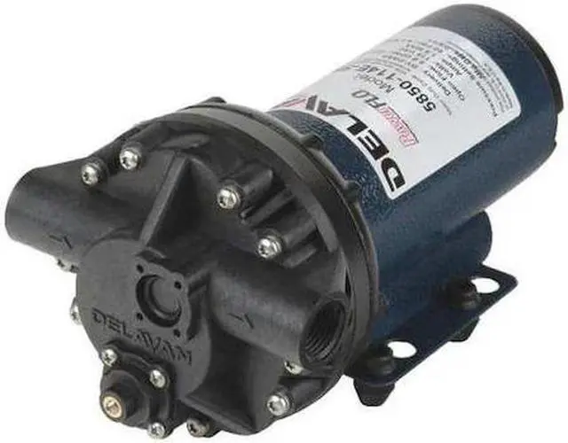 Diaphragm Pump, Operating Pressure (Maximum) 60 psi, Diaphragm Chamber Design 5, Diaphragm Material Santoprene, Check Valve Material Viton, Discharge Connection Size 1/2 in, Discharge Connection Type FNPT, Flow Rate (Maximum) 5 gpm, Housing Material Polypropylene, Intake Connection Size 1/2 in, Intake Connection Type FNPT, Nameplate Voltage 120V AC, Priming Self-Priming, Pump Operation Type Electric, Pressure Switch No, Standards NSF Certified, Flow Rate @ 20 psi 4.1 gpm, Current 1.5 A